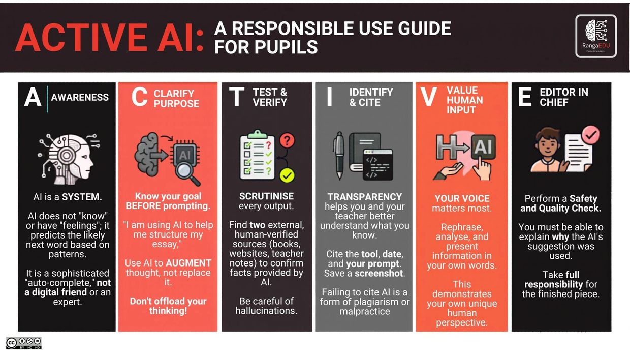 A.C.T.I.V.E. is a simple, six-step process that guides pupils from passive reliance to active, critical mastery of AI.